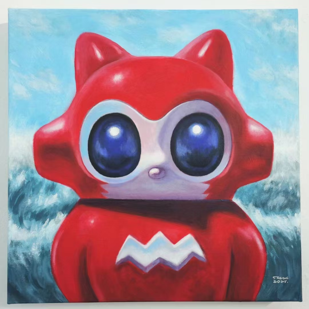 2019年,這段期間轉(zhuǎn)變方向,延續(xù)外星人的題材創(chuàng)作了科賽特(cosette)系列。2020年與52toys合作開始制作科賽特(cosette)玩偶,每一只造型都融合了鯊魚形象的特征,包括一些架上繪畫作品也在往藍(lán)色系的方向發(fā)展。2025年,已經(jīng)從事藝術(shù)創(chuàng)作10年,回顧這10年間,做展覽,合作項(xiàng)目,認(rèn)識了很多志同道合的朋友,包括疫情3年的艱難時刻。偶然間回憶起1999年我畫下的那只藍(lán)色小魚,不知不覺已經(jīng)成長為現(xiàn)在的藍(lán)色鯊魚,鯊魚不停地游動長大,畫筆也無法停下,這就是我的藝術(shù)創(chuàng)作道路。