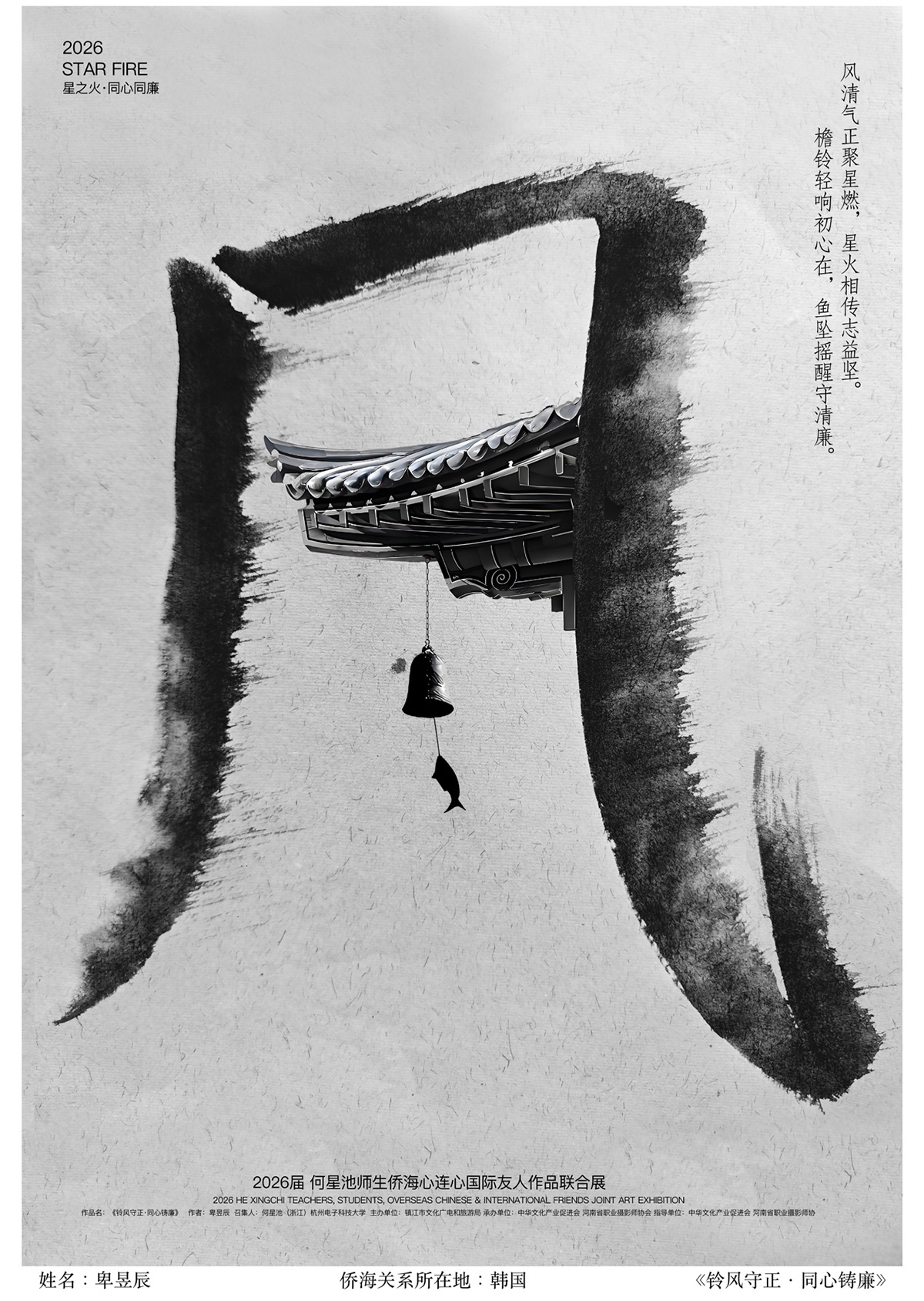 本屆展覽作為“星之火”系列展覽的第四篇章,在繼承前三屆成功經(jīng)驗(yàn)的基礎(chǔ)上,緊扣新時代僑務(wù)工作主線,將“同心同廉”理念深度融入“僑海心連心”實(shí)踐,以留學(xué)歸國人才為紐帶,向全球僑海精英發(fā)出了誠摯邀請,匯聚海內(nèi)外有識之士的創(chuàng)意結(jié)晶,共同打造了一場融合多元文化、彰顯廉潔價值、促進(jìn)藝術(shù)互鑒的國際盛會。